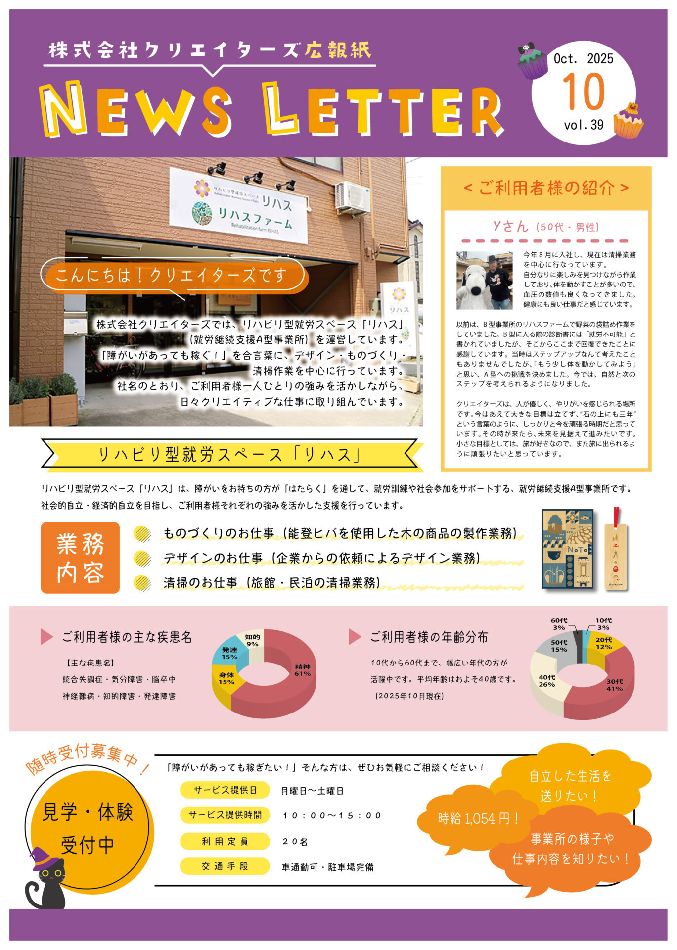 株式会社クリエイターズは「障がいがあっても稼ぐ!」を合言葉に、リハビリ型就労スペース「リハス」(就労継続支援A型)を運営しております。